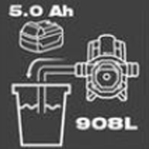 • ด้วยอัตราการไหล 1817 ลิตร/ชม. สามารถสูบน้ำได้ 908 ลิตรต่อการชาร์จแบตเตอรี่ M18 5.0 Ah หนึ่งก้อน